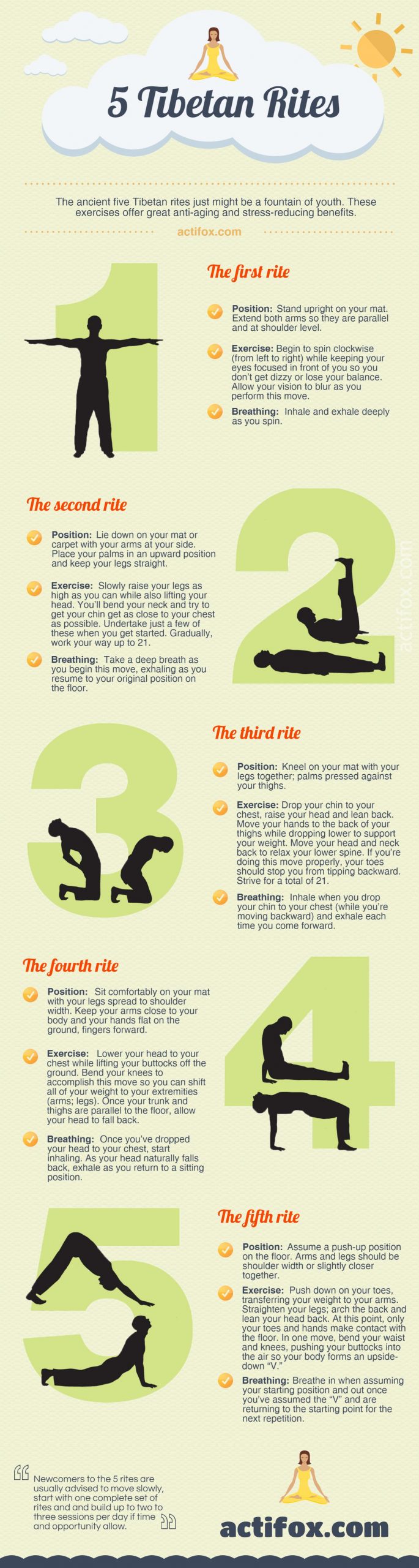 Like all exercise programs, the Five Tibetan Rites should be done with care. Start with gentle movements and a low number of repetitions.